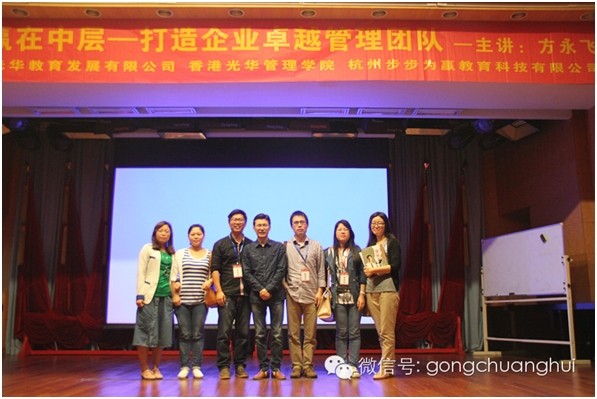 5月17日早9點,共創(chuàng)會管理人員職業(yè)化塑造之《贏在中層——打造企業(yè)卓越管理團隊》在浙江嘉海大酒店十樓會議廳如期舉行,本次課程有幸邀請到共創(chuàng)會創(chuàng)始人、時代光華教育發(fā)展有限公司總裁、步步為贏教育科技集團董事長----方永飛老師擔(dān)任主講教授,方老師表示,從現(xiàn)在中小企業(yè)的整體情況看,員工的職業(yè)化素養(yǎng)普遍偏低,難以規(guī)范,但要讓企業(yè)有一個規(guī)范健康的發(fā)展,首先要統(tǒng)一員工的思想,加強管理人員的職業(yè)化塑造,就此觀點,方老師特地為共創(chuàng)會會員企業(yè)安排此次課程,旨在打造出一支支強有力的團隊,全面推動會員企業(yè)管理升級。