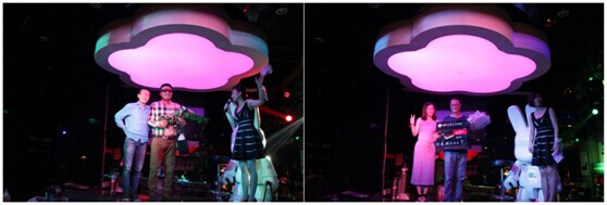 (上圖為一團團長與共創(chuàng)會會長分別為本次共創(chuàng)好聲音的冠亞軍得主頒獎)
