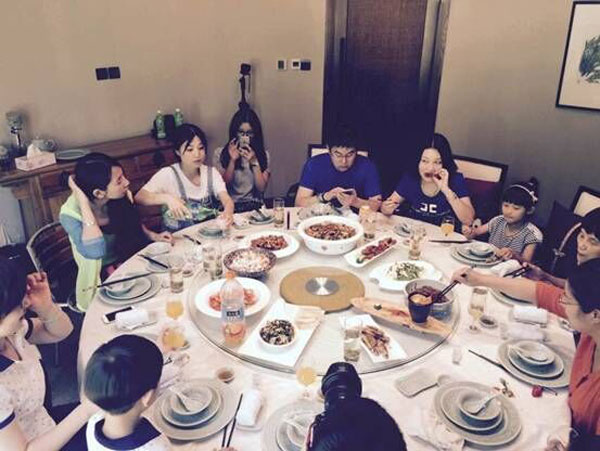 共軍們齊聚《茶經(jīng)》,席間還有小朋友唱歌助興,更有“小baby”,“小鄭愷”和“小李晨”的撕名牌環(huán)節(jié),孩子們玩得不亦樂乎。