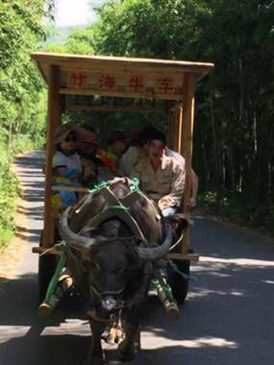 坐上牛拉大蓬車,沿竹徑通幽的彎彎小道緩緩而行,樸實憨厚的老牛公牽著他心愛的老牛熱情地為你服務(wù),兩旁竹林散發(fā)出陣陣清香,一聲吆喝,老牛甩著尾巴拉著你顛簸幾下,讓人感到親切而快樂,有一種返樸歸真的感覺。