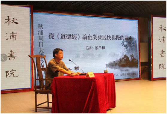 秋浦書院董事長正在為全體安徽行共軍們講解從《道德經(jīng)》輪企業(yè)發(fā)展快慢的關(guān)系