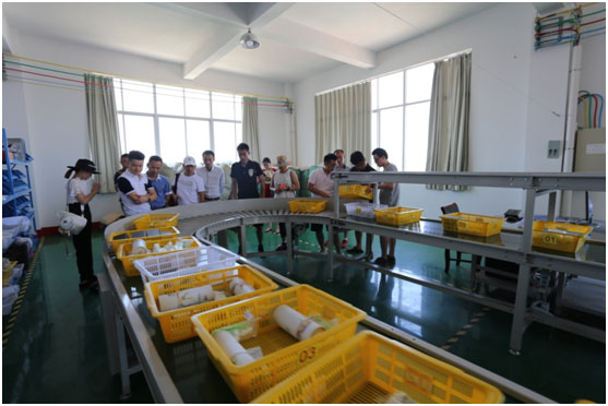 共軍一行人參觀天喜網(wǎng)絡(luò)科技有限公司的辦公環(huán)境、倉(cāng)庫(kù)流水線操作,工廠的包裝、陳列、手藝都做得嚴(yán)謹(jǐn)有序。