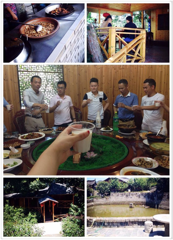 我們自駕驅(qū)車到達(dá)麗水當(dāng)?shù)?,?huì)員浙江天喜網(wǎng)絡(luò)科技有限公司總經(jīng)理李欣駿早已在具有當(dāng)?shù)靥厣?“潛溪山莊”為游學(xué)共軍一行備好午餐?!按簛?lái)便是桃花水,不辨仙源何處尋”,小編被這下車后的麗水美景所震驚。