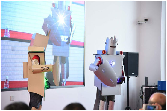(以芬尼克茲自主研發(fā)制造的智能機(jī)器人設(shè)置開(kāi)場(chǎng),高端個(gè)性的開(kāi)場(chǎng)讓人眼前一亮。)