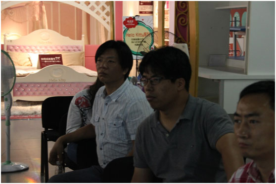 (上圖是義烏市雷群貿(mào)易有限公司總經(jīng)理趙群生在認真聽取后,對酷漫居的轉(zhuǎn)型史提問)