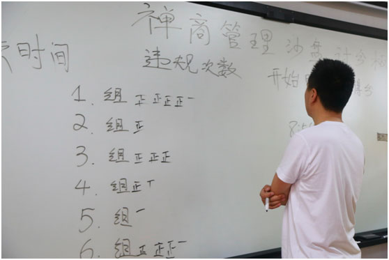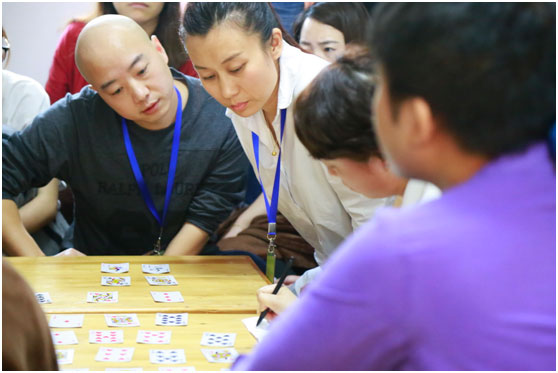 全體師兄分組成6個(gè)公司,并進(jìn)行公司成員的角色分配,全程只能用手勢(shì)和表情進(jìn)行部門(mén)溝通,各司其職來(lái)完成管理沙盤(pán)的演練。簡(jiǎn)單簡(jiǎn)短的一個(gè)演練游戲,卻神奇的將每個(gè)人在企業(yè)經(jīng)營(yíng)中自身存在的脾氣和優(yōu)缺點(diǎn)瞬間暴露,令每位師兄感慨反思。