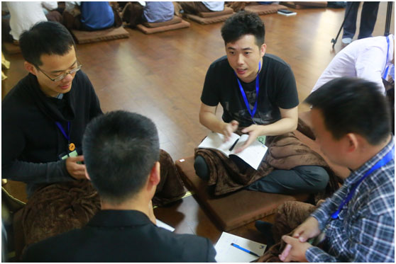 禪商學(xué)員們分別寫(xiě)下開(kāi)課師兄布置的問(wèn)題,在師兄的指引下相互幫助,參禪悟并討論分析解答。