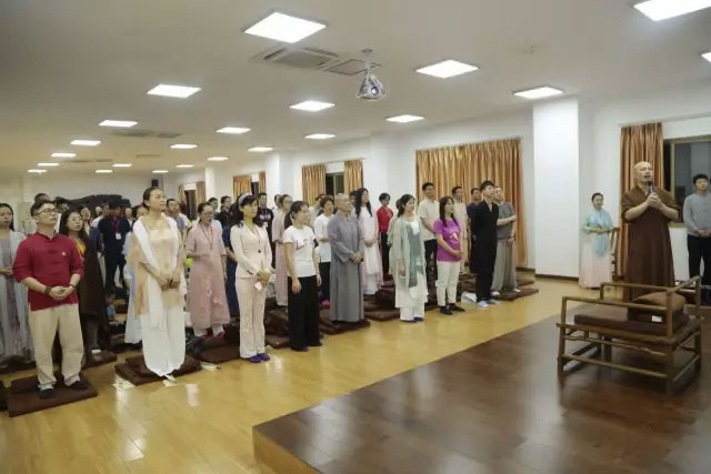 共聚禪堂,交流心得,暢言修行體會?;壑袔煾搁_示,大眾呈上人生的疑問與痛苦,師父指點(diǎn)迷津,末后鼓勵大眾發(fā)菩提心,“正心正念,日行十善!”