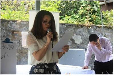 (圖為中國第一旅行女裝――綻放品牌創(chuàng)始人安麗(“茉莉”女士)按照曹老師提出的九步商業(yè)模式對(duì)自家企業(yè)進(jìn)行分析講解,并提出自身公司存在的優(yōu)勢(shì)與問題)