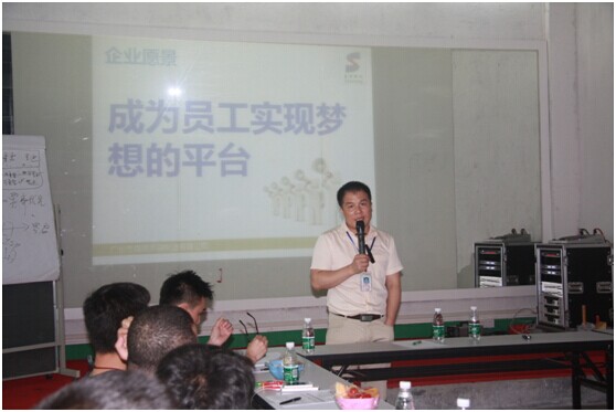 (上圖李總正在強(qiáng)調(diào):企業(yè)要成為員工實(shí)現(xiàn)夢(mèng)想的平臺(tái),要體現(xiàn)阿米巴模式中“敬天愛(ài)人”的核心本質(zhì))