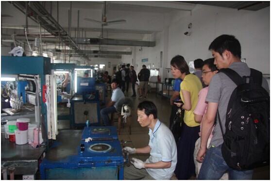 (圖為共創(chuàng)會一行參觀工廠,了解產(chǎn)品的制作流程與工藝。流水化的生產(chǎn)線,員工認(rèn)真的工作態(tài)度都體現(xiàn)了晉源祥的專業(yè)性)