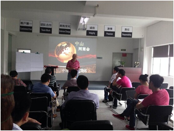 (上圖為中山網(wǎng)商會會長李輝為會員們分享商圈文化)