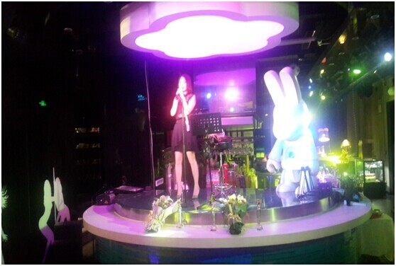 (上圖為杭州品蔻服飾有限公司總經(jīng)理余銀平傾情演唱《夜夜夜夜》)