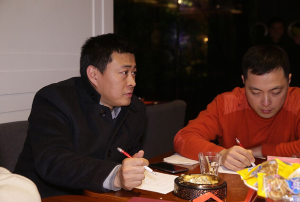 (上圖杭州多拿滋餐飲管理有限公司百滋百特創(chuàng)始人李總正認(rèn)真聆聽諸位老總給出的建議與意見)