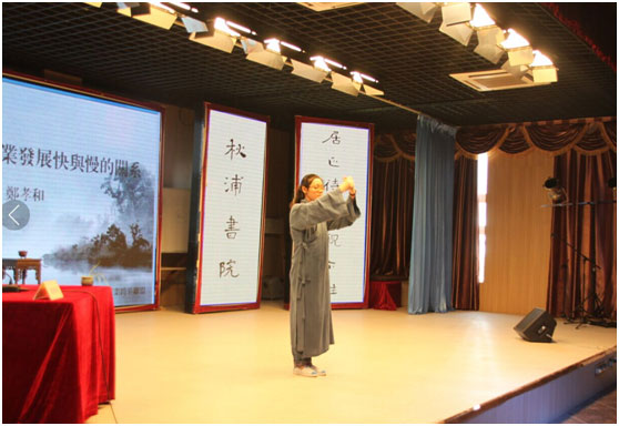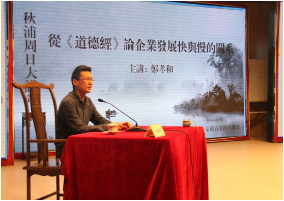 秋浦書院董事長正在為全體安徽行共軍們講解從《道德經(jīng)》輪企業(yè)發(fā)展快慢的關(guān)系