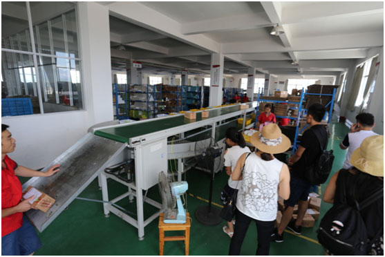共軍一行人參觀天喜網(wǎng)絡(luò)科技有限公司的辦公環(huán)境、倉(cāng)庫(kù)流水線操作,工廠的包裝、陳列、手藝都做得嚴(yán)謹(jǐn)有序。