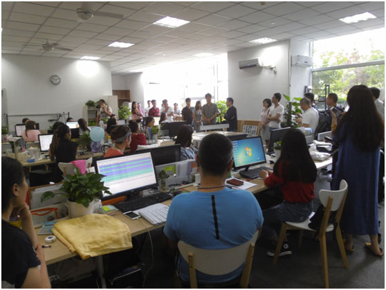 在面積不算大的辦公室里,綻放員工對共創(chuàng)會一行人的參訪表示欣喜與歡迎,袁總也邀請共創(chuàng)會創(chuàng)始人方永飛老師對本次行程致辭。
