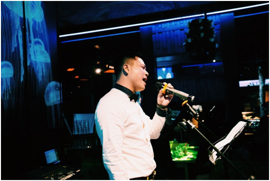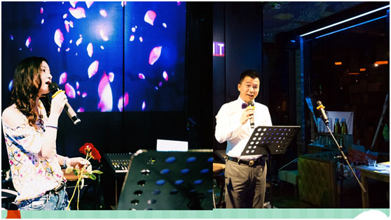首先登場(chǎng)——共創(chuàng)會(huì)“頭牌巨星”海寧朗舜皮草有限公司總經(jīng)理諸為忠,演繹歌曲《聽(tīng)?!罚珗?chǎng)氣氛瞬間被點(diǎn)燃。