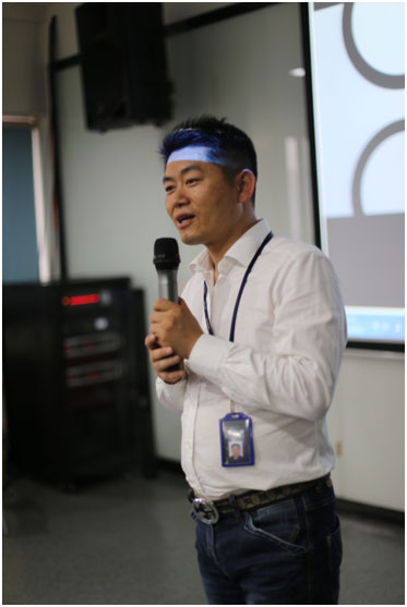 (圖為沐童總經理張海波分享沐童的發(fā)展史和自身企業(yè)經營模式)