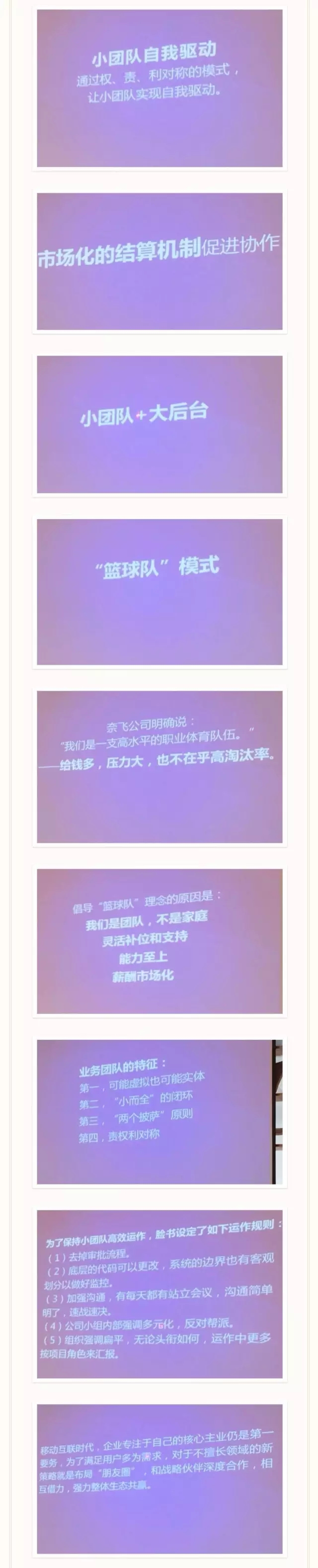 第二是組織構(gòu)架,組織構(gòu)架不是掛上各個(gè)部門(mén)的名稱,重要的是前臺(tái)、中臺(tái)和后臺(tái)。公司如果想做成內(nèi)部的創(chuàng)業(yè)平臺(tái)型公司,很重要的一點(diǎn)是你是否有足夠好的后臺(tái)支撐、人事財(cái)務(wù)支撐、組織支撐、企業(yè)文化支撐、互聯(lián)網(wǎng)技術(shù)支撐。