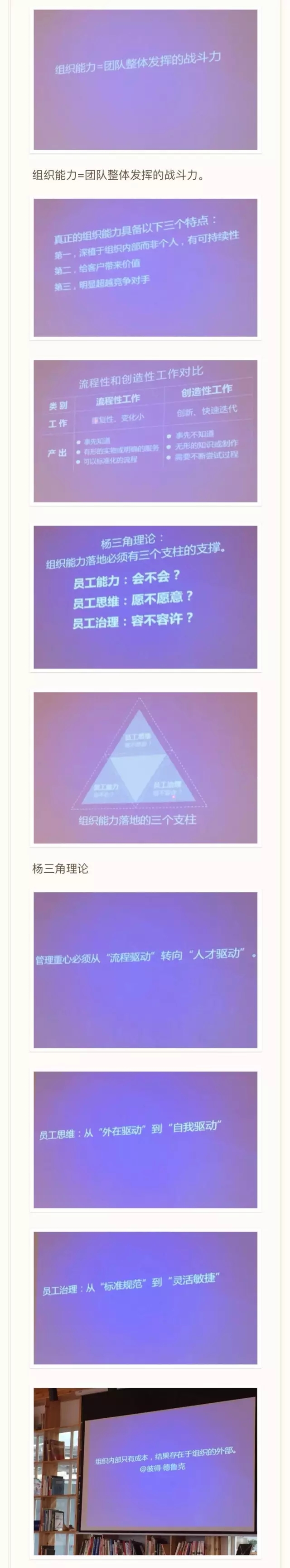 第三是企業(yè)的持續(xù)成功=戰(zhàn)略X組織能力。公司CEO一定要清楚公司的商業(yè)邏輯、組織構(gòu)架,從我5年淺顯的創(chuàng)業(yè)經(jīng)驗(yàn)來(lái)看,這兩點(diǎn)其實(shí)不是規(guī)劃出來(lái)的,而是邊做邊打版出來(lái)的。